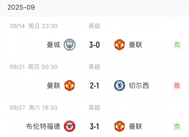 9月份,曼联共进行了3场比赛,战绩为1胜2负。B费三场比赛一谈首发出战,并在对阵切尔西时打入一球。