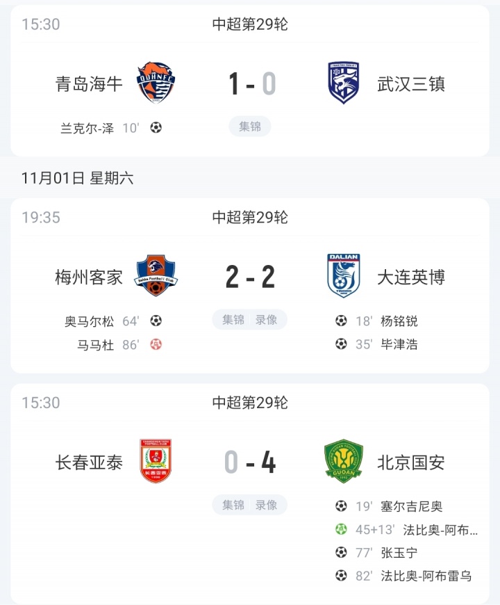 昨晚梅州客家2-2战平大连英博后,武汉三镇便提前保级,最终在今天的比赛中不敌青岛海牛。
