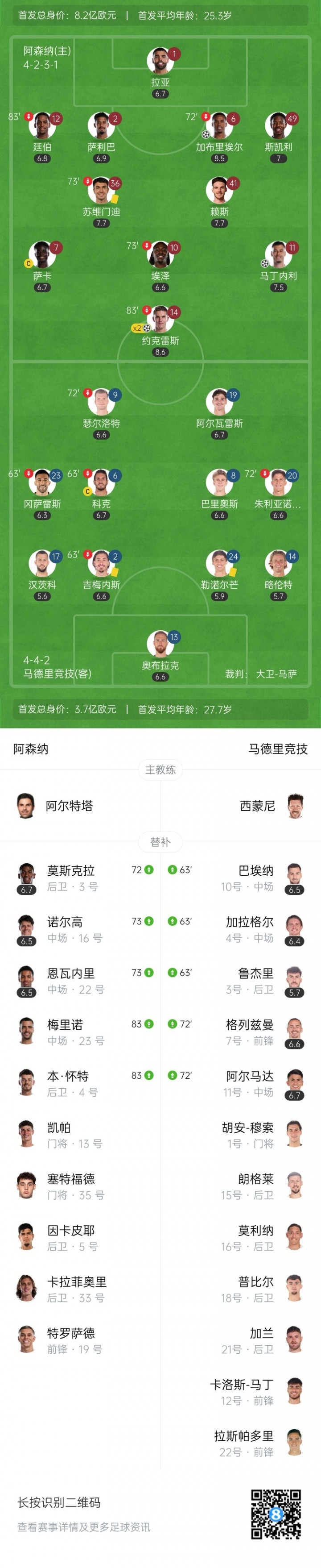 直播吧10月22日讯马竞本轮0-4遭阿森纳横扫,西蒙尼在第63分钟作念了一次连换3东谈主的调遣,巴埃纳、加拉格尔、鲁杰里上场,换下吉梅内斯、冈萨雷斯和科克。