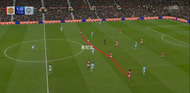 在取得进球后,卡里克立时换下了姆伯莫,球队的战术体系切换为愈加保守的预防反击模式。此时曼联的中后场甚而不错完全烧毁前场支点,因为库尼亚会主动回撤至中场参与预防。