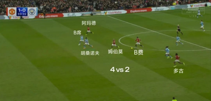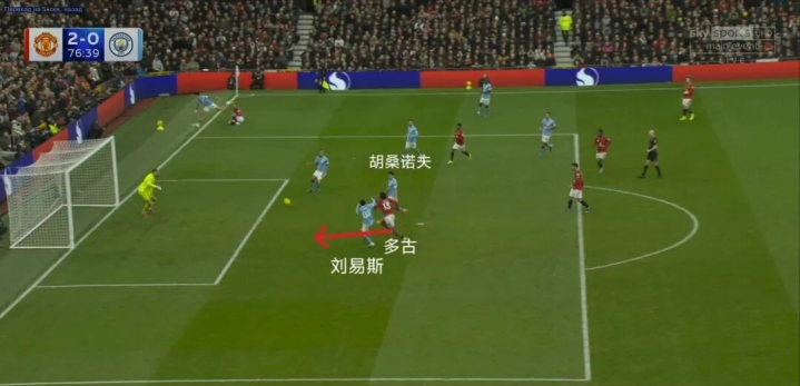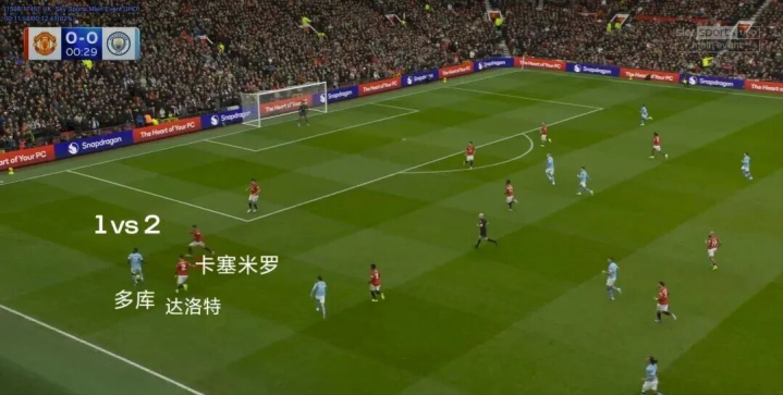 曼联的战术部署顾惜针对了曼城的右路紧要区域,也就是多库的活跃地带。
