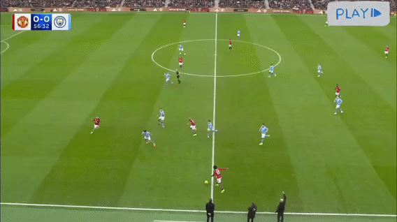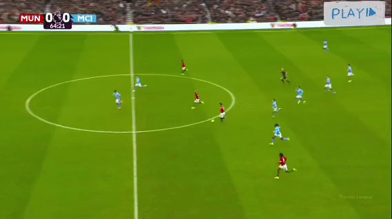 而在本场比赛中,瓜迪奥拉终于找到了破解曼联边路转变战术的办法。他祭出的中枢支吾战术,即是打法一条高位防地。全场比赛下来,曼城防地的平均站位达到近52米,恰平正于球场的中线位置。