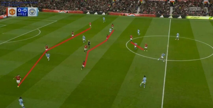 早在阿莫林执教时期的初次曼市德比中,曼联就曾在伊蒂哈德球场凭借这套战术见效显耀。