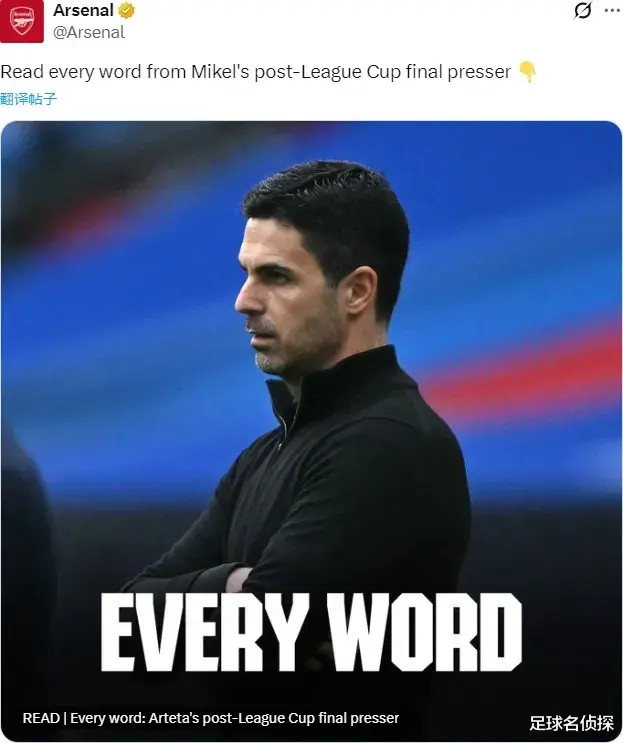 阿尔特塔出席了赛后新闻发布会,我们来看关键内容。