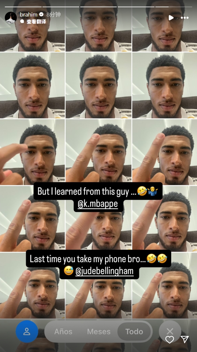 迪亚斯回话姆巴佩:“我从这家伙(贝林厄姆)哪里学的”